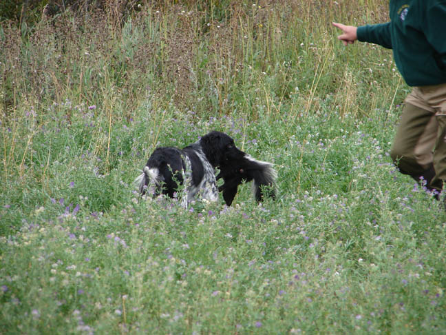 The independent search, and its intended outcome, the retrieve, lie on opposite ends of the spectrum from marked or blind retrieves. In an independent search a dog may have cooperatively searched a field or sat obediently near a blind. Then, at an instant, it is asked to reverse its approach. The dog will take the cue and then make its own decisions, temporarily suspending the normal invisible bond between dog and hunter. The dog will work out of range and change direction as required. As Sheri put it, this is the forté of the fully versatile breed, and a versatile dog's secret weapon.