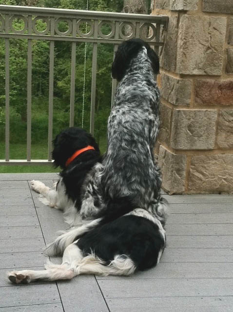 Backing is sometimes treated as a trained subject. Training may be required if a dog's intelligent pointing instinct does not prompt it to back. I've been impressed with the manner in which these dogs backed, similar to actual pointing. This coupled with observing a natural, sudden and intense back of a 12-week-old LM puppy convinces me that we have significant natural backing in our LMs.