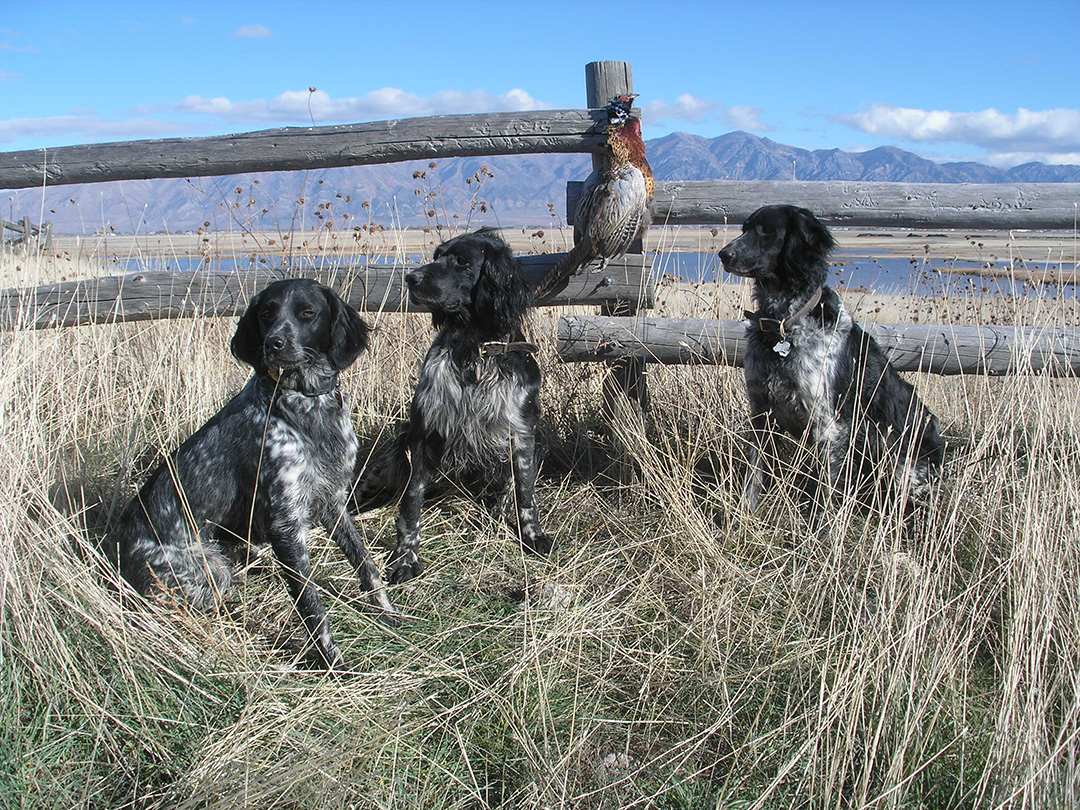 From left to right, Bear Hill's Ember, Herz & Seele's Ebony and Sunnynook's Tessa have hunted 11 of the 19 upland birds North America has to offer, including Blue, Ruffed, Sharp-tailed and Sage grouse, Scaled, Valley, Gambel's and Mearns' quail, and Chukar, Hungarian Partridge and Pheasants. Those hunts took them to them to five states and one province.