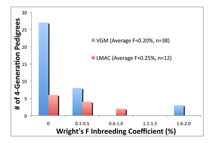 At a test on 15 September 2016 near Saskatoon, LMAC judges evaluated the conformation of three LMs against the breed’s international standard for form and function. All three dogs conformed to the standard in body form, coat and temperament and thus satisfied the requirements expected for eligibility to breed. The judges highlighted positive aspects in these dogs such as a calm temperament when measured, handled and mouths opened by strangers, smooth movement and appropriate placement of paws in a trot, gently rising-toward-front topline. Aspects that detracted somewhat and would benefit from balancing via a strategic choice of mates included slight cowhock and a tight scissors bite leading to early signs of premature tooth wear.