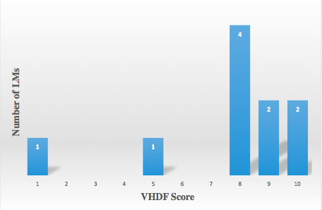 Testing backing in NAVHDA is a relatively recent addition, and is only part of the Invitational Test. Backing and a 1-hr brace is a regular aspect in VHDF's Performance Evaluation. Since we founded VHDF in 2007, 10 LMs were evaluated in the Performance Evaluation. These came from 6 different kennels including 2 German imports (see chart at the left). VHDF evaluates backing and honouring as linked ends of a continuum. A dog B backs when it assumes a pointing stance or at least respectful attention merely from seeing dog A on point, without dog B being in the scent cone. If dog B does not back, but after a command stands and watches the other dog complete its pointing and retrieving it still shows respect for the other dog's work and can earn partial score. The scores in the graph show that two dogs performed this task flawlessly, and 6 more needed only a bit of help. |